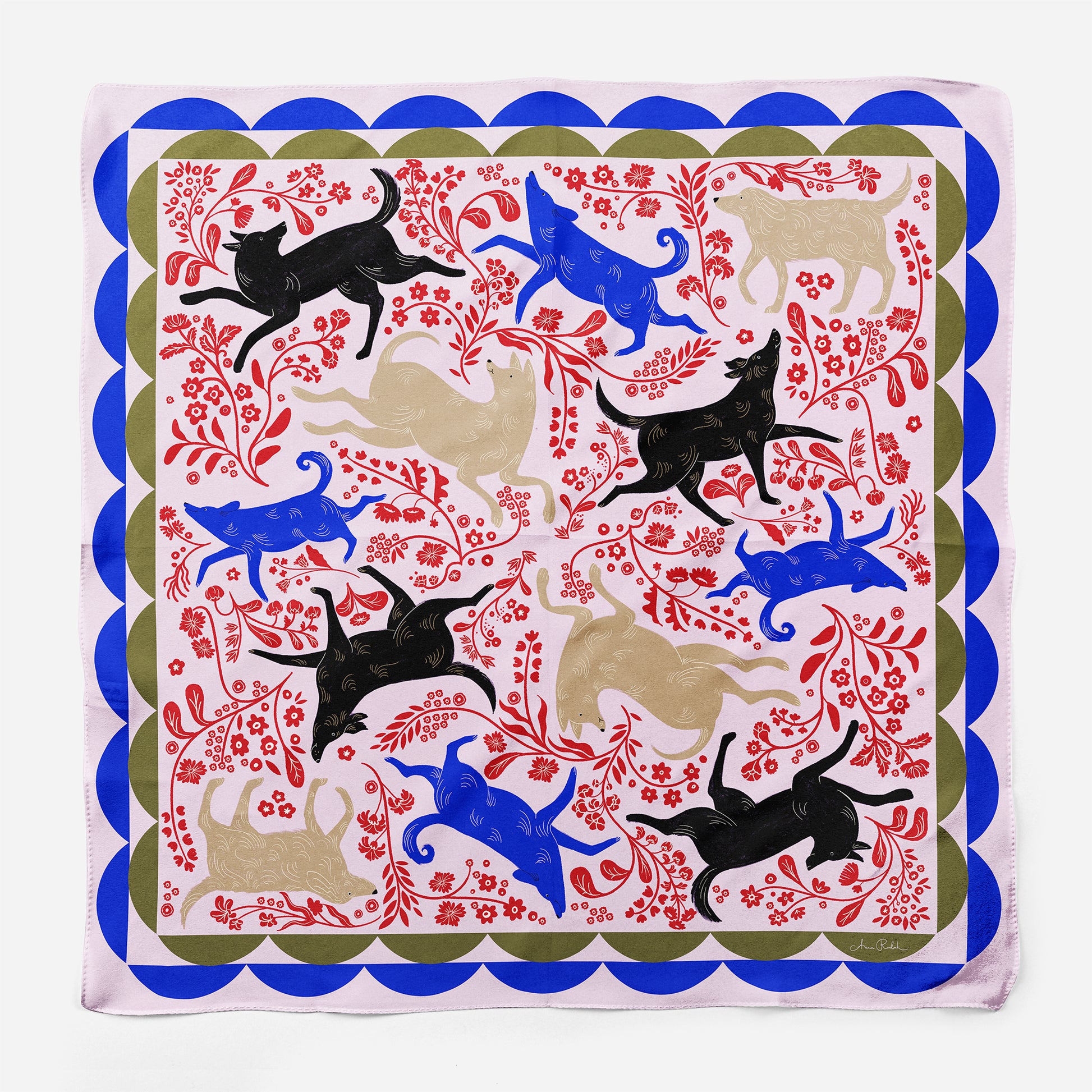 apaszka z ilustracją przedstawiającą rozsądną ilość radosnych piesków
